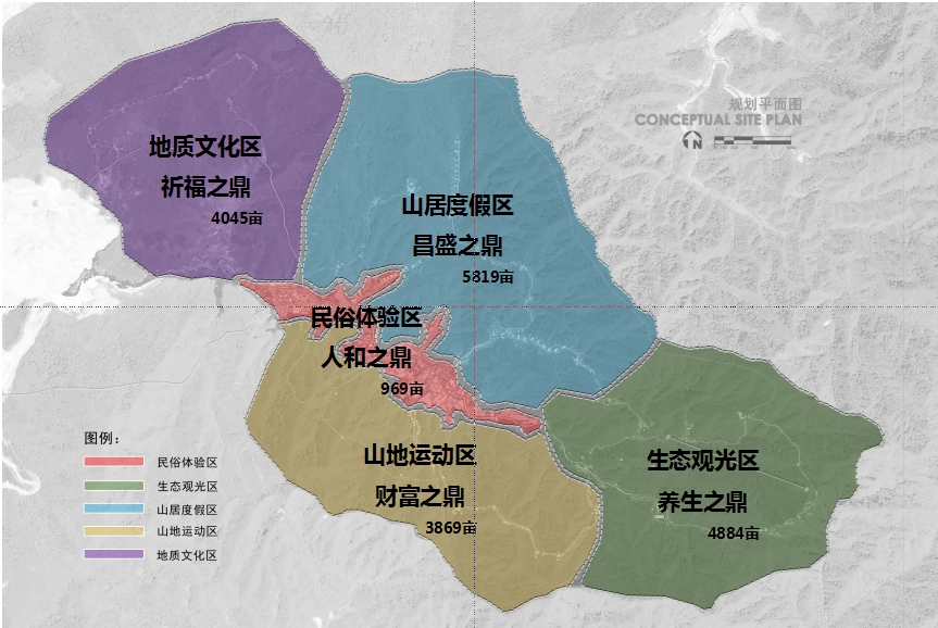 價值創新:以保持五鼎山優良的生態環境、原味的鄉村氛圍為前提,以豐富、高品質的“山、水、林、石” 資源為依托,以市場需求為導向,以項目建設為抓手,通過豐富旅游項目活動、增加文化體驗內容、完善基礎服務設施、優化旅游管理運營等,打造生態觀光、文化體驗、休閑避暑、養生度假、科普運動等深度融合的規?;⒓s化、綜合型原 生態輕雅野奢養生度假森林 。打造開放式旅游景區,依托昆明少有的山水奇景、優良生態,通過山林生態建設、全域景觀優化、多元文 化注入等,構成:文化森林養生旅游目的地 。