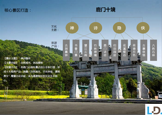 策劃思路:項(xiàng)目以隱逸文化為主題打造“鹿門十景”,形成景區(qū)旅游吸引力,二次激活鹿門山大眾旅游;開展“慢游鹿門”工程以休閑綠道建設(shè),滿足專項(xiàng)市場(chǎng)需求,樹立景區(qū)形象;做大鹿門寺宗教旅游打造襄陽(yáng)宗教旅游第一品牌;全面強(qiáng)化景區(qū)基礎(chǔ)設(shè)施建設(shè),優(yōu)化景區(qū)旅游環(huán)境,打造 AAAA 級(jí)旅游景區(qū)。