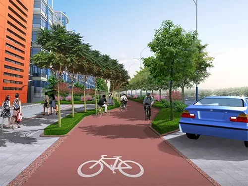 ②通過道路綠化、街道家具等進(jìn)行各類交通行為的分隔,設(shè)置小廣場、休閑長廊、茶座等供居民使用。
