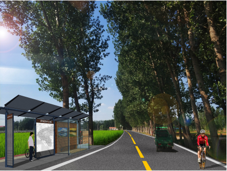 農(nóng)村公交站點(diǎn)設(shè)置:設(shè)置間距為1km,如與村口、道口可考慮實(shí)時(shí)縮短或增加距離 ;車站滿足候車功能同時(shí)可融合互聯(lián)網(wǎng)+的相關(guān)服務(wù)信息,例如二維碼查詢車次運(yùn)營情況及篩選去周邊區(qū)域車次。