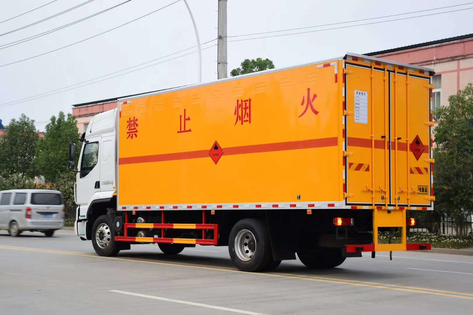 東風(fēng)柳汽單橋國六危險(xiǎn)品廂式車采用單橋系列高頂雙臥駕駛室,符合最新規(guī)要求配置,現(xiàn)底盤已到貨。目前是提前更新的國六公告,優(yōu)于同類車型。該車采用350L鋁合金油箱,5100mm軸距,玉柴245馬力,6缸發(fā)動機(jī),9噸后橋,275/80R22.5胎,液壓機(jī)械翻轉(zhuǎn)、夾層玻璃、電動玻璃升降器、定速巡航系統(tǒng)、ABS、行駛記錄儀+兼容北斗GPS),中控鎖、空調(diào),真皮多功能方向盤、前置排氣管、前輪防爆胎裝置、盤式前橋、ECU限速裝置(限速80km/h)、駕駛室電源總開關(guān),T-BOX、EBS、TPMS、LDWS、FCW。整車尺寸:9000× 2550×3800mm;廂體尺寸:6600×2420×2420mm, 嚴(yán)格按照公告尺寸制作,外板采用1mm厚冷軋板有一次性成型的百葉窗,內(nèi)飾為導(dǎo)電性能良好的鋁板有透氣孔,內(nèi)襯為矩形管骨架牢靠穩(wěn)定,內(nèi)部填充為透氣防潮阻燃的擠塑板,四種材料經(jīng)現(xiàn)代工藝復(fù)合而成,廂體外部上下鋁合金型材包邊,底板和車廂前下部鋪橡膠皮,后門雙開,右側(cè)中部雙開門,內(nèi)部有固定貨物的臥環(huán),車輛外部有靜電帶、滅火器、防火罩,車廂內(nèi)安裝煙霧報(bào)警器和門防盜報(bào)警器,嚴(yán)格按照國家危險(xiǎn)品相關(guān)法規(guī)張貼。