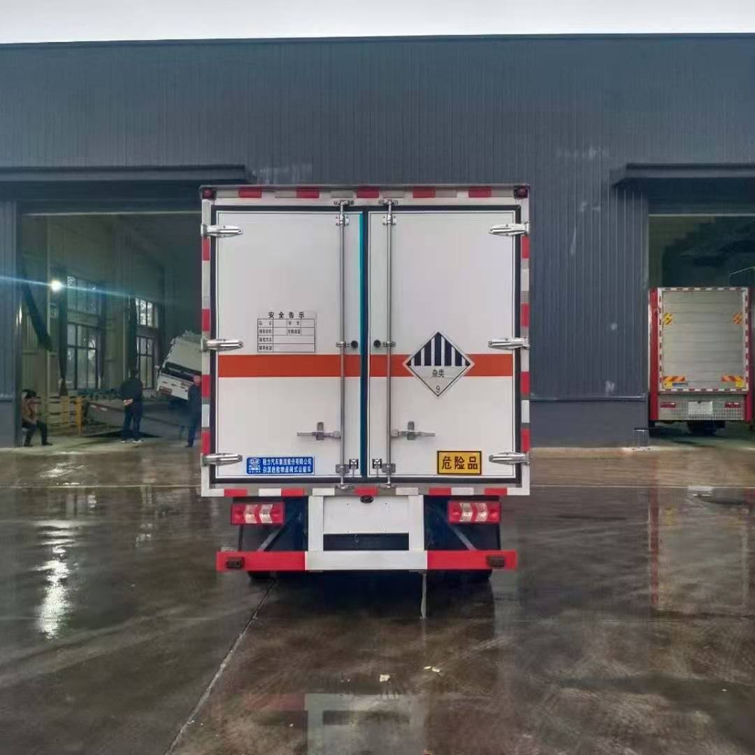 國(guó)六躍進(jìn)C500氣瓶運(yùn)輸車嚴(yán)格按照公告尺寸制作,邊2底3材質(zhì),帶可卸式高欄,底板上鋪靜電膠皮,配備滅火器,三角頂燈,靜電拖帶等,嚴(yán)格按照國(guó)家危險(xiǎn)品法規(guī)進(jìn)行“易燃?xì)怏w”標(biāo)識(shí)粘貼等。廂體嚴(yán)格按照公告尺寸制作,外板采用1mm厚冷軋板有一次性成型的百葉窗,內(nèi)飾為導(dǎo)電性能良好的鋁板有透氣孔,內(nèi)襯為矩形管骨架牢靠穩(wěn)定,內(nèi)部填充為透氣防潮阻燃的擠塑板,四種材料經(jīng)現(xiàn)代工藝復(fù)合而成,廂體外部上下鋁合金型材包邊,底板和車廂前下部鋪橡膠皮,后門雙開(kāi),右側(cè)中部單開(kāi)門,內(nèi)部有固定貨物的臥環(huán),車輛外部有靜電帶、滅火器、防火罩,車廂內(nèi)安裝煙霧報(bào)警器和門防盜報(bào)警器,嚴(yán)格按照國(guó)家危險(xiǎn)品相關(guān)法規(guī)張貼。