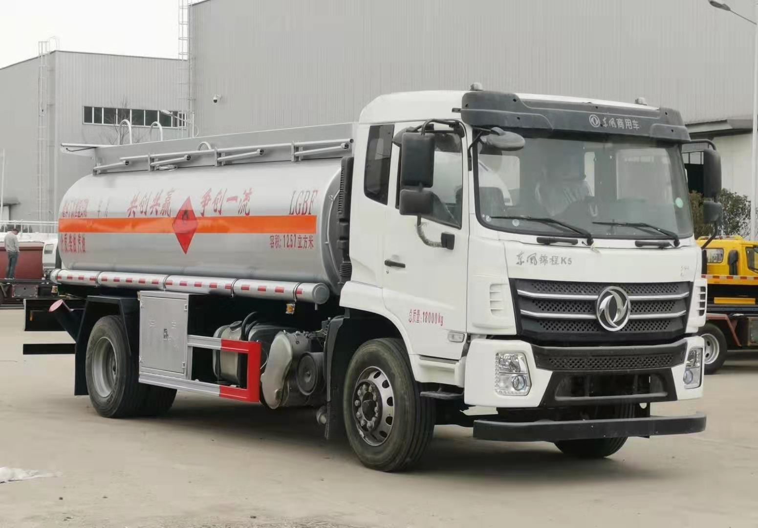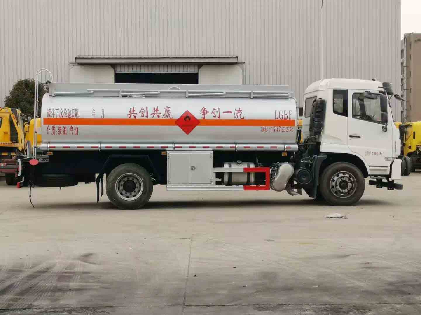 國六東風(fēng)錦程K5全法規(guī)加油車標(biāo)配前下防護(hù),排氣管前置,限速80kw/h,四通道ABS,安全帶未系提醒裝置,制動(dòng)襯片磨損提醒裝置,前輪防爆胎應(yīng)急安全裝置。標(biāo)配符合JT/T 1285-2020標(biāo)準(zhǔn)的新法規(guī)項(xiàng):前向碰撞預(yù)警,車道偏離預(yù)警,EBS電控制動(dòng)系統(tǒng),胎壓監(jiān)測(cè)系統(tǒng)。罐體公告容積12.57立方米;單倉帶泵,罐體采用Q235碳鋼板制作,厚度5(mm),內(nèi)置防浪板,前后水壓封頭;全套歐標(biāo)包含:罐體頂部2個(gè)鋁合金歐標(biāo)罐口,底部1個(gè)氣動(dòng)緊急切斷閥;1套歐標(biāo)下裝油及油氣回收系統(tǒng),1套防溢流系統(tǒng);安裝氣動(dòng)緊急切斷閥;頂部上圍板內(nèi)置式上走道帶防滑網(wǎng),兩側(cè)安裝活動(dòng)護(hù)欄,尾部安裝爬梯一個(gè);泵進(jìn)泵出口及下裝油口安裝在車身一側(cè)閥門箱內(nèi),兩根鐵制管道筒配透明輸油膠管2根;安全告示牌一個(gè),安裝靜電拖地帶,靜電接地線,配備滅火器2支;罐體銀灰色油漆,中部粘貼橙色反光帶,粘貼“易燃液體”標(biāo)識(shí)及紅白反光條,安裝LED示廓燈;選裝車載加油機(jī)。