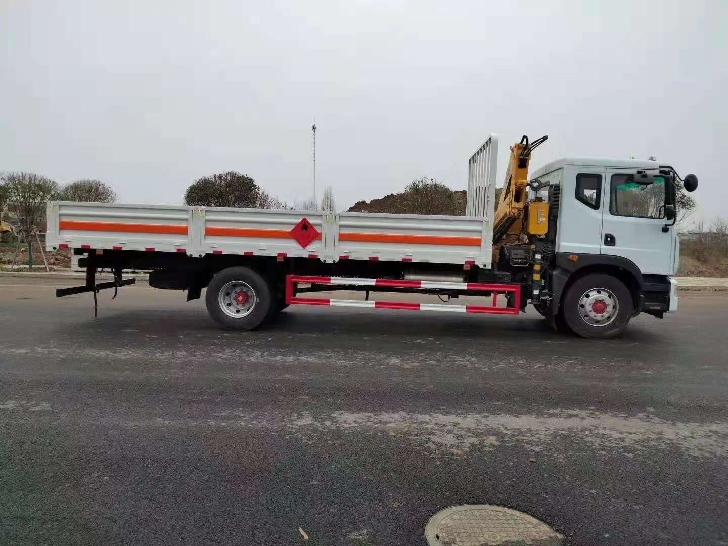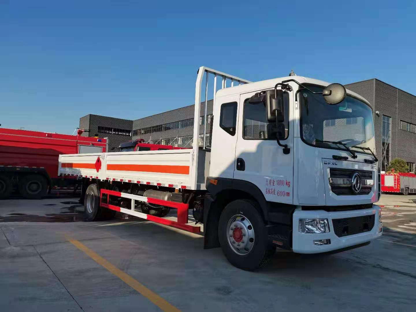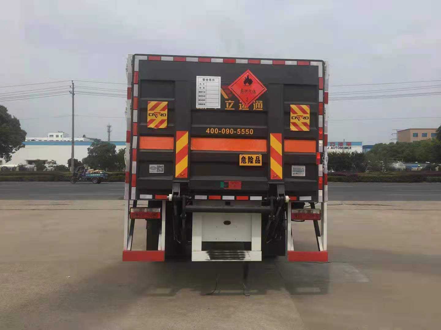 東風(fēng)D9國(guó)六6米8氣瓶運(yùn)輸車(低平板)采用廂式欄板車結(jié)構(gòu),外厚度為1.1毫米厚度武鋼冷軋鋼板(或沖壓成瓦楞板,以公告為準(zhǔn)),內(nèi)加強(qiáng)“幾”字型加強(qiáng)梁,車體底板加強(qiáng)處理并做防靜電處理。車體的左側(cè)、右側(cè),和后欄板栓鉤結(jié)構(gòu),可向下打開(kāi),方便上下貨物,車體為空曠式車型,大大減少了運(yùn)輸物品因?yàn)楠M窄空和強(qiáng)烈碰撞產(chǎn)生氣瓶爆炸的危險(xiǎn)性,箱體外觀涂裝白色油漆,在欄板的中間位置粘貼橙色的;嚇(biāo)帶,并在車體的左、右、后部粘貼“易燃?xì)怏w”或“不燃?xì)怏w”標(biāo)識(shí)。駕駛室內(nèi)部配備兩只滅火器,后杠處安裝防追尾事故的緩沖固定塊。此款車輛屬于國(guó)家規(guī)定的危險(xiǎn)品二類危險(xiǎn)品運(yùn)輸車。