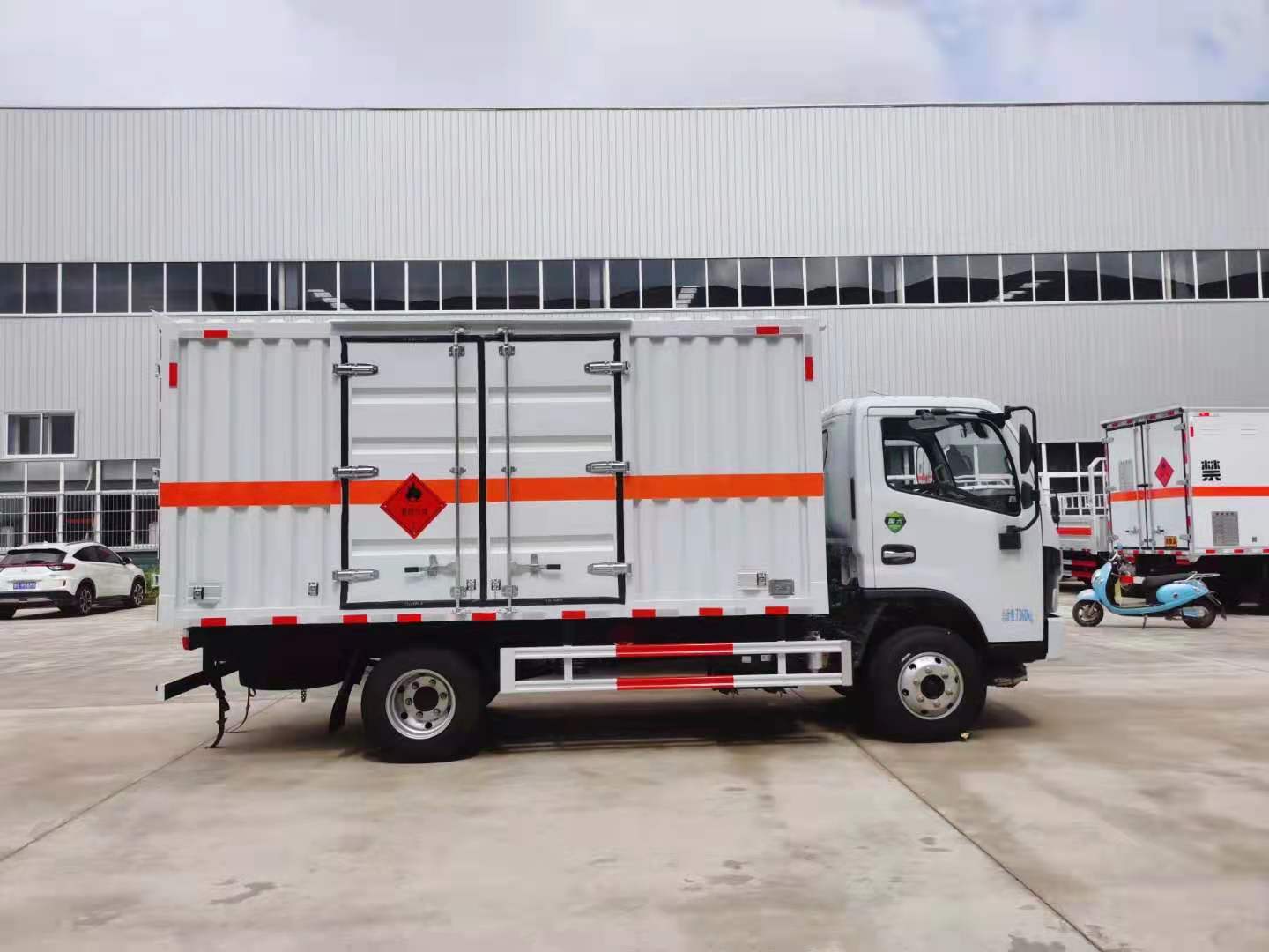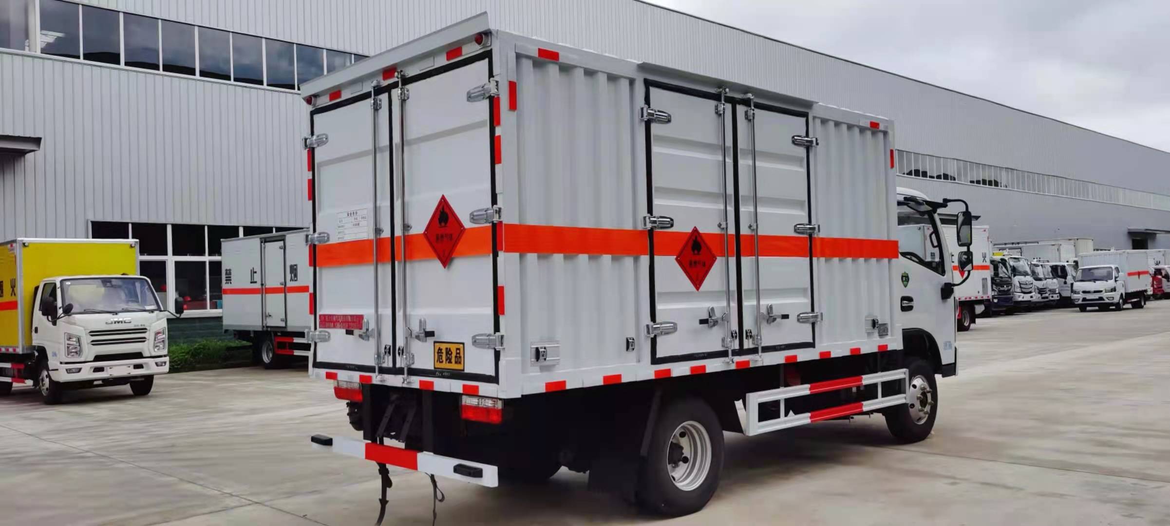 東風福瑞卡國六危險品車廂體采用使用全新輕量化技術(shù),采用獨有的“三明治”大板壓制工藝,外蒙皮為定制環(huán)保型滾涂板材,免漆環(huán)保;內(nèi)蒙皮選用防靜電鋁板,頂板外蒙皮為整張FRP板材,后門框為不銹鋼材質(zhì),使用三元乙丙橡膠門封條以及高檔鍍鋅、不銹鋼五金件,包邊包角采用高檔鋁合金材料或不銹鋼材料,美觀耐用。廂體側(cè)壁有防雨功能自然通風窗口,廂體內(nèi)部配有固定拉環(huán),底板鋪設(shè)導靜電膠板。門磁報警器、煙霧報警器、導靜電拖地帶等安全配置齊全。