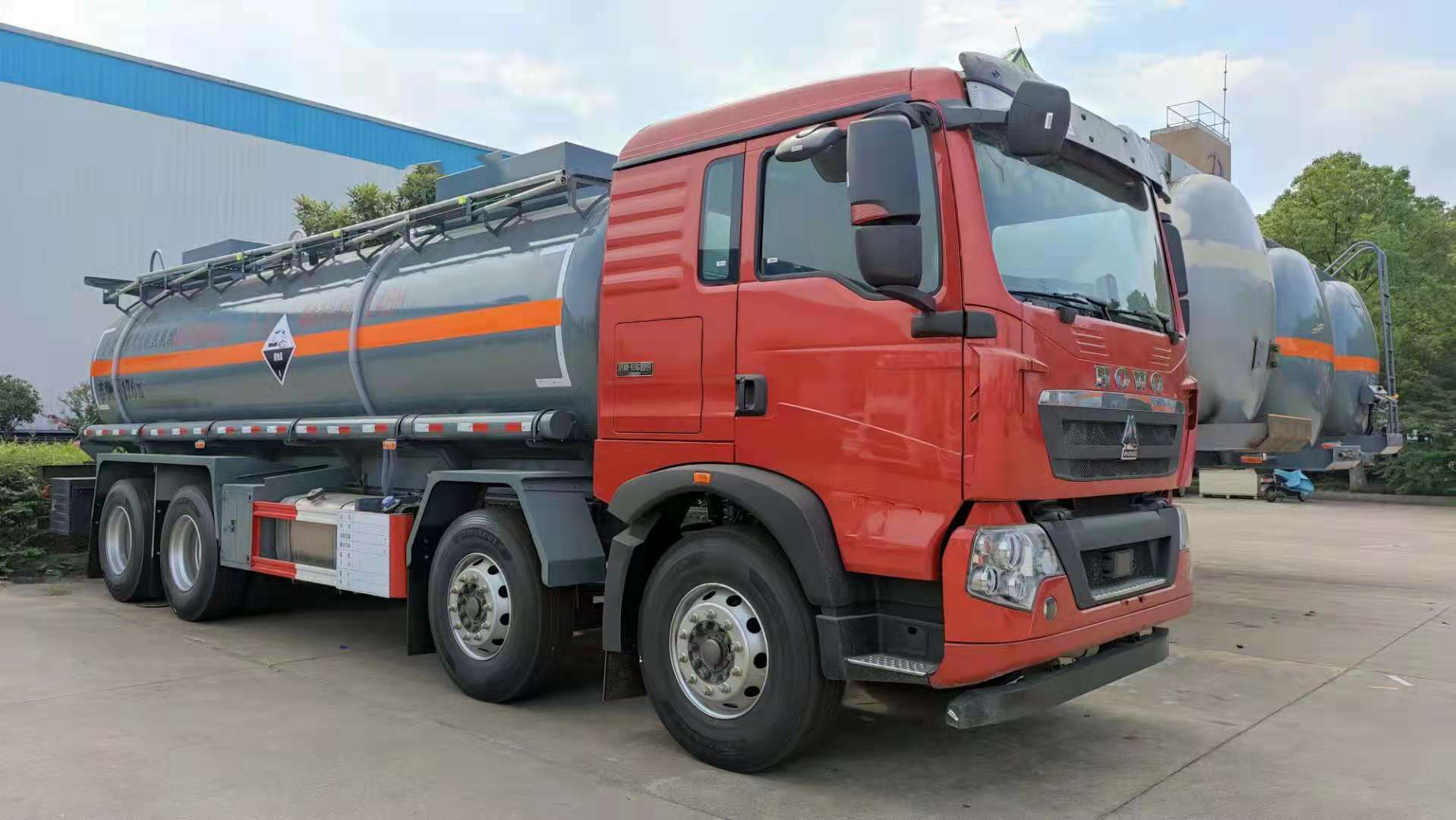 重汽豪沃前四后八腐蝕品罐式運輸車采用豪沃TX5危險品車底盤,TX-V駕駛室,帶多功能方向盤;主氣囊+副簡易型座椅;MC07H.35-60發(fā)動機;HW13709XSTC2變速箱+HW70法蘭式取力器;VPD75D前軸(盤);MCY11BES雙后橋(盤);速比4.63;雙層車架(8+4/280);前少后空氣懸架(3/3/-/-);8198方向機;前置排氣系統(tǒng);EBS+ESC;中位保險杠(非金屬); 12R22.5;400L油箱;LDWS+FCWS(帶雷達);拉索式PTO;中國重汽智能通B版;終端排放監(jiān)控裝置;轉向輪爆胎應急裝置;選裝胎壓監(jiān)測系統(tǒng)。