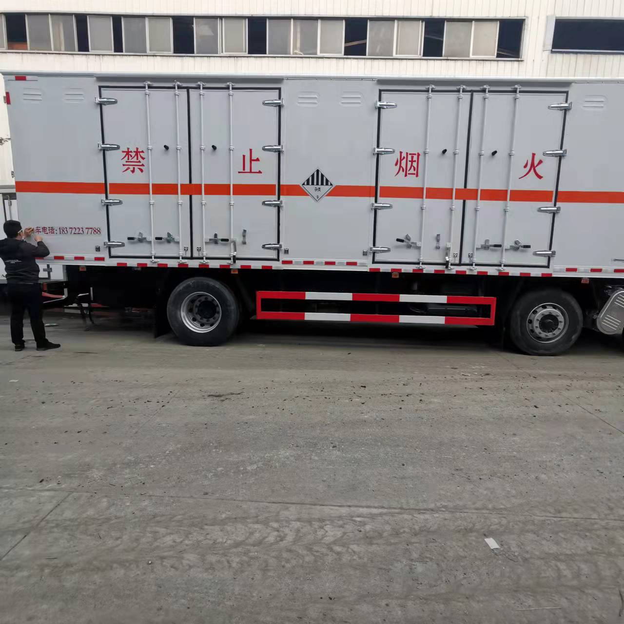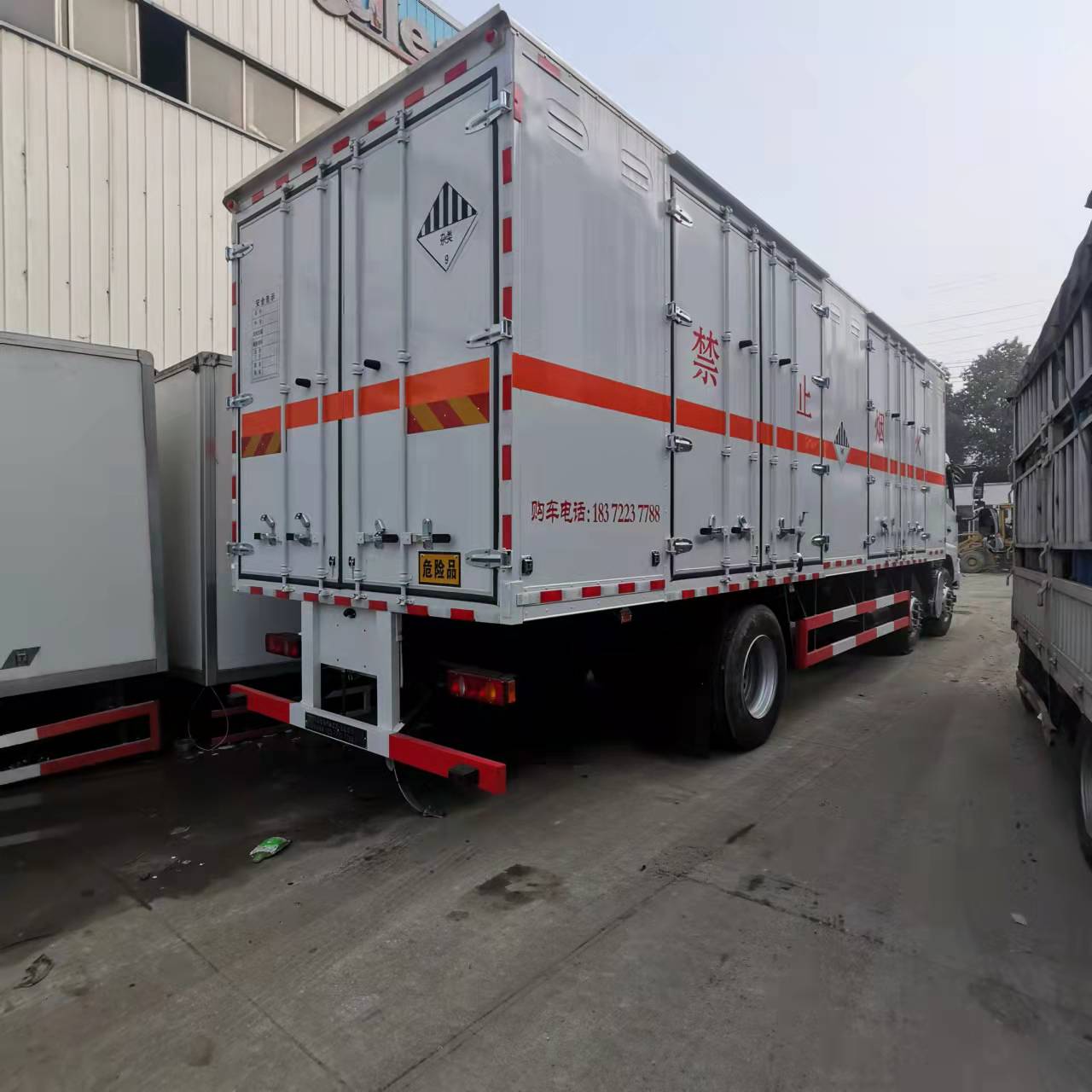 東風(fēng)天錦三軸帶雙開雙側(cè)門國六危險品車選擇的是外板采用1mm厚冷軋板有一次性成型的百葉窗,內(nèi)飾為導(dǎo)電性能良好的鋁板有透氣孔,內(nèi)襯為矩形管骨架牢靠穩(wěn)定,內(nèi)部填充為透氣防潮阻燃的擠塑板,四種材料經(jīng)現(xiàn)代工藝復(fù)合而成,廂體外部上下鋁合金型材包邊,底板和車廂前下部鋪橡膠皮,后門雙開,右側(cè)中部兩個雙開門,內(nèi)部有固定貨物的臥環(huán),車輛外部有靜電帶、滅火器、防火罩,車廂內(nèi)安裝煙霧報警器和門防盜報警器,嚴(yán)格按照國家危險品相關(guān)法規(guī)張貼。