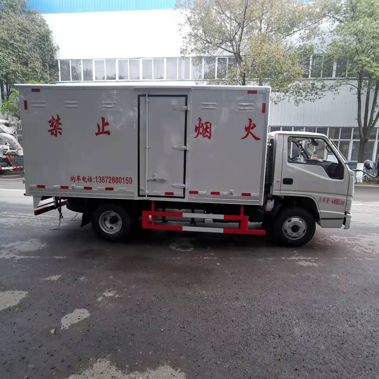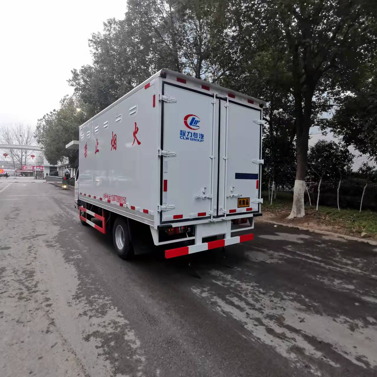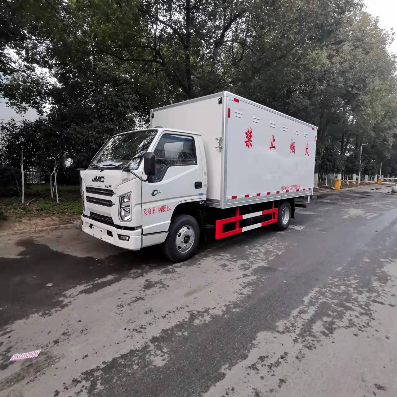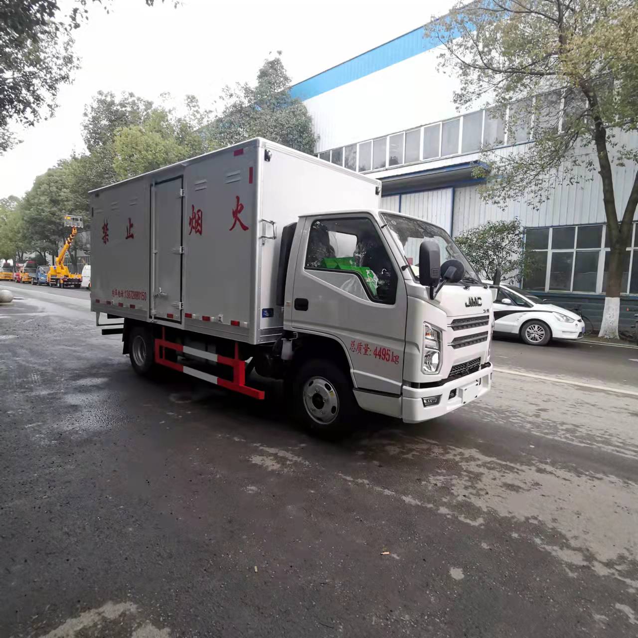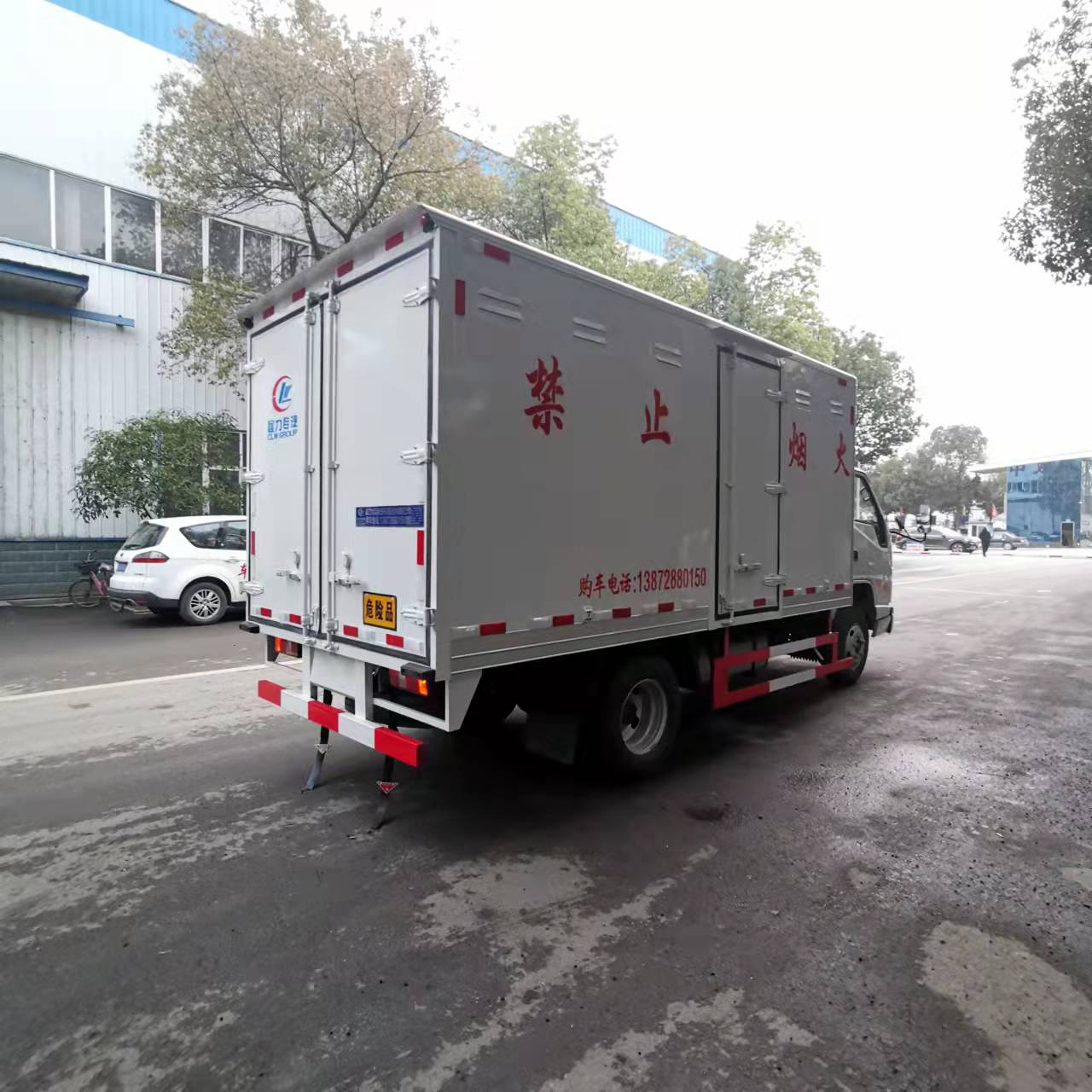 江鈴國(guó)六藍(lán)牌易燃?xì)怏w廂式運(yùn)輸車嚴(yán)格按照公告尺寸制作,外板采用1mm厚冷軋板有一次性成型的百葉窗,內(nèi)飾為導(dǎo)電性能良好的鋁板有透氣孔,內(nèi)襯為矩形管骨架牢靠穩(wěn)定,內(nèi)部填充為透氣防潮阻燃的擠塑板,四周種材料經(jīng)現(xiàn)代工藝復(fù)合而成,廂體外部上下鋁合金型材包邊,底板和車廂前下部鋪橡膠皮,后門雙開,右側(cè)中部單開門,內(nèi)部有固定貨物的臥環(huán),車輛外部有靜電帶、滅火器、防火罩,車廂內(nèi)安裝煙霧報(bào)警器和門防盜報(bào)警器,嚴(yán)格按照國(guó)家危險(xiǎn)品相關(guān)法規(guī)張貼。