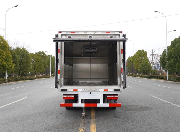 東風(fēng)多利卡國六玉柴140馬力醫(yī)療廢物轉(zhuǎn)運(yùn)車廂體保溫廂板外蒙皮為玻璃鋼板,內(nèi)蒙皮為不銹鋼板,車廂內(nèi)四周設(shè)置圓弧型不銹鋼及轉(zhuǎn)角,消毒和清洗時(shí)無清理死角。保溫層為硬質(zhì)聚氨酯泡沫; 廂體為全密閉型,后門為雙層密閉結(jié)構(gòu)(設(shè)置雙后門和內(nèi)開門兩層門)確保廂體內(nèi)盛裝的垃圾醫(yī)療與外界的隔斷,醫(yī)療廢物轉(zhuǎn)運(yùn)車車廂分為貨物盛裝倉和醫(yī)用物品放置倉,在醫(yī)用物品放置倉外部(副司機(jī)方)開設(shè)單側(cè)門,方便醫(yī)用和醫(yī)療器械的存放, 醫(yī)療廢物轉(zhuǎn)廂體前、后和兩側(cè)設(shè)有醫(yī)療廢物和警識標(biāo)識,駕駛。