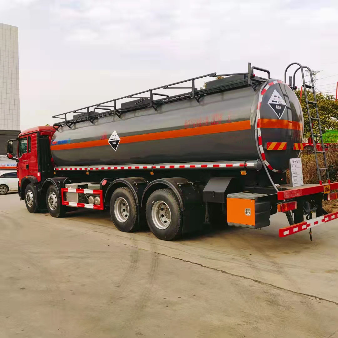 重汽前四后八國六襯塑罐車曼340馬力發(fā)動機,12檔箱,11噸級后橋,1200真空胎,罐體容積18.5立方,運輸介質(zhì):硫酸,鹽酸,氫氧化鈉.外罐體材料厚度按照國家標(biāo)準(zhǔn)制作,罐體通倉,罐體內(nèi)襯聚乙稀塑厚度16mm,一個全塑罐口帶接酸盤(罐口周圍帶方形保護箱,內(nèi)做重瀝青防腐),罐體尾底部帶一個DN100型不銹鋼襯四氟海底閥(帶聲光報警裝置),副梁前高后低,罐體尾部右側(cè)一個DN80襯氟球閥為出料口帶全塑保護箱,大梁下出料。罐體右側(cè)帶不銹鋼固定護欄,花紋板走道,碳鋼后爬梯,兩個滅火器,兩根卸料管,其余按廠家標(biāo)配生產(chǎn)制作。油漆采用深灰防腐漆,貼反光條,貼反光帶,安全告示。
