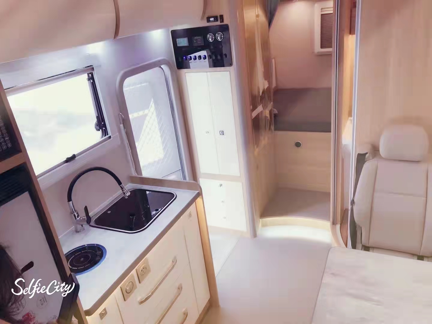 東風(fēng)凱普特國(guó)六房車采用經(jīng)典布局,從前到后依次是、客廳、整體廚房和衛(wèi)生間,車內(nèi)商務(wù)氣息較濃重,額頭上方的床位專門配備有小型爬梯供上下使用。坐式卡座沙發(fā),沙發(fā)采用真皮包裹,坐墊較柔軟。卡座沙發(fā)中央配有可升降餐桌,將餐桌降至最低高度,并將卡座沙發(fā)的靠背鋪設(shè)在餐桌上。廚房采用仿大理石灶臺(tái),洗手盆、電磁爐、內(nèi)嵌式冰箱等生活用品一應(yīng)俱全,房車空間寬敞,無(wú)論是休息或商談,都能給您帶來(lái)絕對(duì)舒適的感覺(jué)。