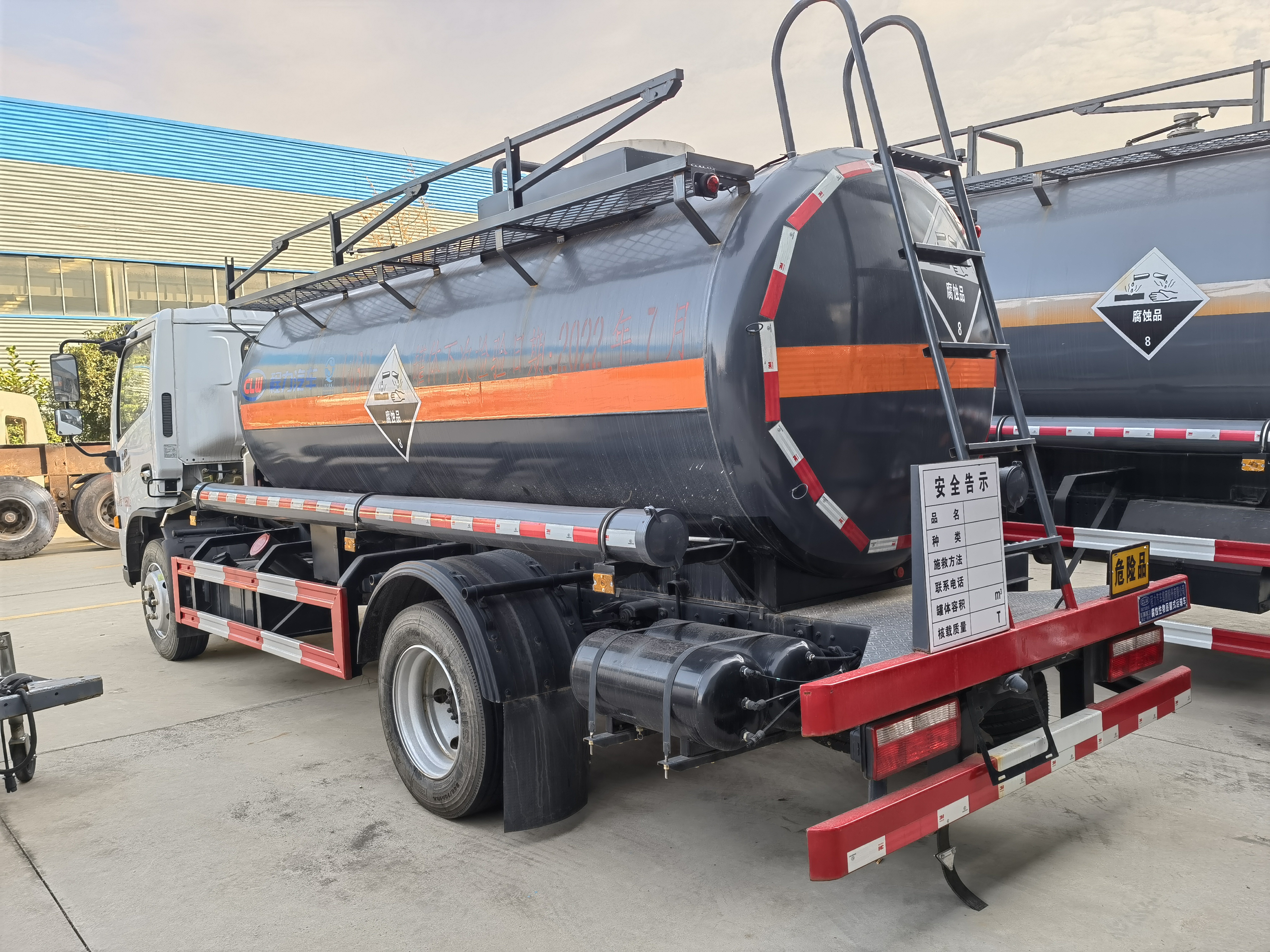 東風(fēng)大多利卡國六腐蝕品罐式運(yùn)輸車采用的是東風(fēng)原廠危險品車底盤,玉柴165馬力發(fā)動機(jī)。寬體駕駛室可乘坐3人是多利卡顯著的特點(diǎn),原廠的空調(diào)制冷效果顯著,重點(diǎn)是為了增加客戶體驗(yàn)感,該車車內(nèi)噪音密封性有大幅度提升,可達(dá)到轎車水平。該車采用的是寬體后視鏡及流媒體智能后視鏡,貨箱容積率提升6%帶中控鎖、電動門窗、貨箱采用的是外罐體材質(zhì)為Q235B型4.2mm厚板材,封頭4.5mm厚,罐體通倉,內(nèi)襯16mm聚乙烯,雙層鋼襯塑防浪板,兩個全塑罐口蓋,罐口周圍用方盒子式圍邊,圍板內(nèi)做襯塑防腐,帶兩套不銹鋼安全閥,罐體頂部帶不銹鋼升降護(hù)欄,帶走道,罐體底部帶一個DN100不銹鋼襯氟海底閥(海底閥帶聲光報警裝置),罐體后尾部左右各一個DN60鋼襯塑球閥為出料口帶全塑保護(hù)箱,大梁下出料,一個工具箱,尾部爬梯。兩根卸料管,兩個8KG滅火器,其余標(biāo)配。