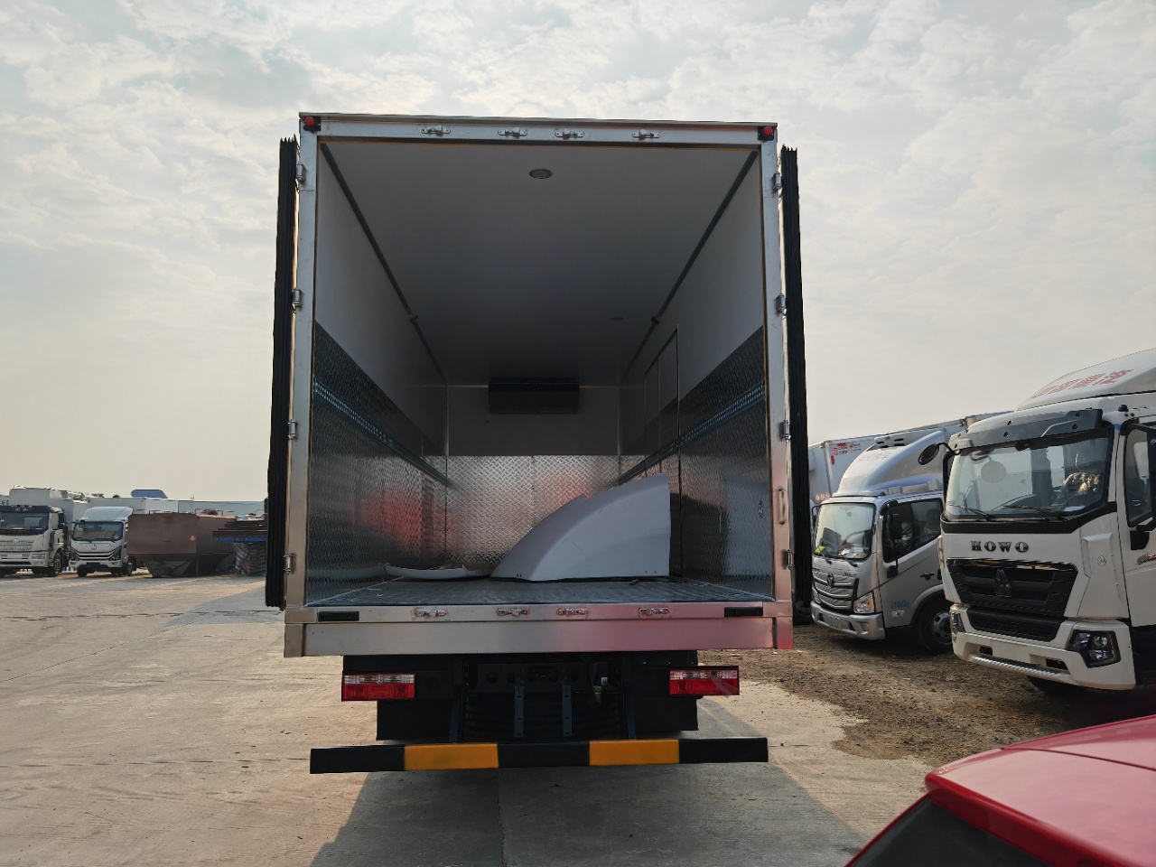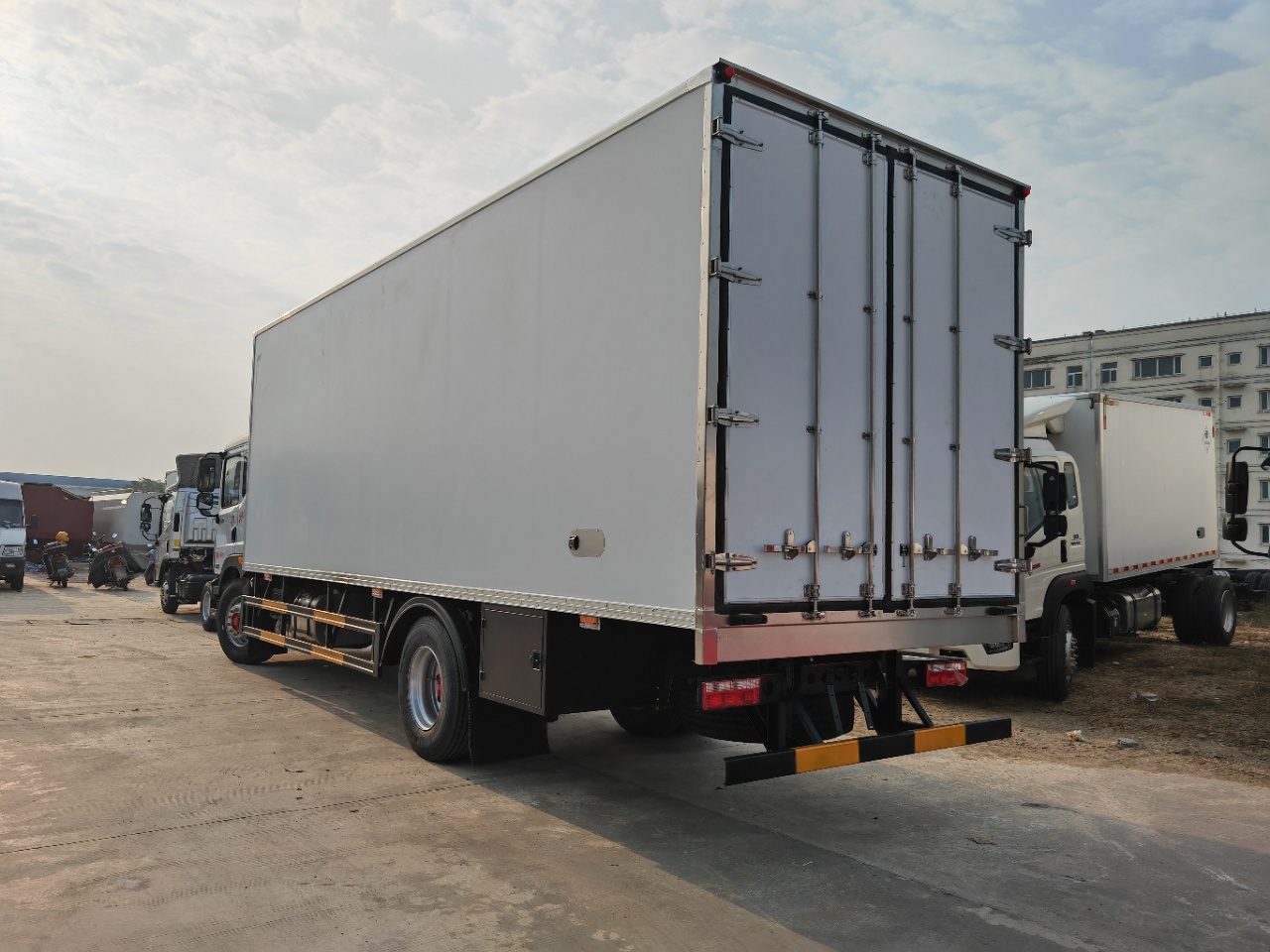 東風(fēng)D9帶進(jìn)口機(jī)組醫(yī)療廢物轉(zhuǎn)運(yùn)車(chē)廂體材質(zhì)采用外玻璃鋼,內(nèi)不銹鋼,中間為高密度保溫?cái)D塑板,后雙開(kāi)門(mén),底板為加厚不銹鋼,門(mén)邊條采用迷宮式橡膠密封條,鋁合金型材包邊,不銹鋼包角,不銹鋼門(mén)鎖門(mén)框及合頁(yè)。副駕駛室側(cè)開(kāi)對(duì)開(kāi)門(mén),門(mén)中門(mén),紫外線殺毒燈,噴淋裝置,配污水箱、凈水箱等。選裝帶爬梯及工具箱。選裝國(guó)產(chǎn)或進(jìn)口制冷機(jī)組。冷王T880制冷機(jī)組。
