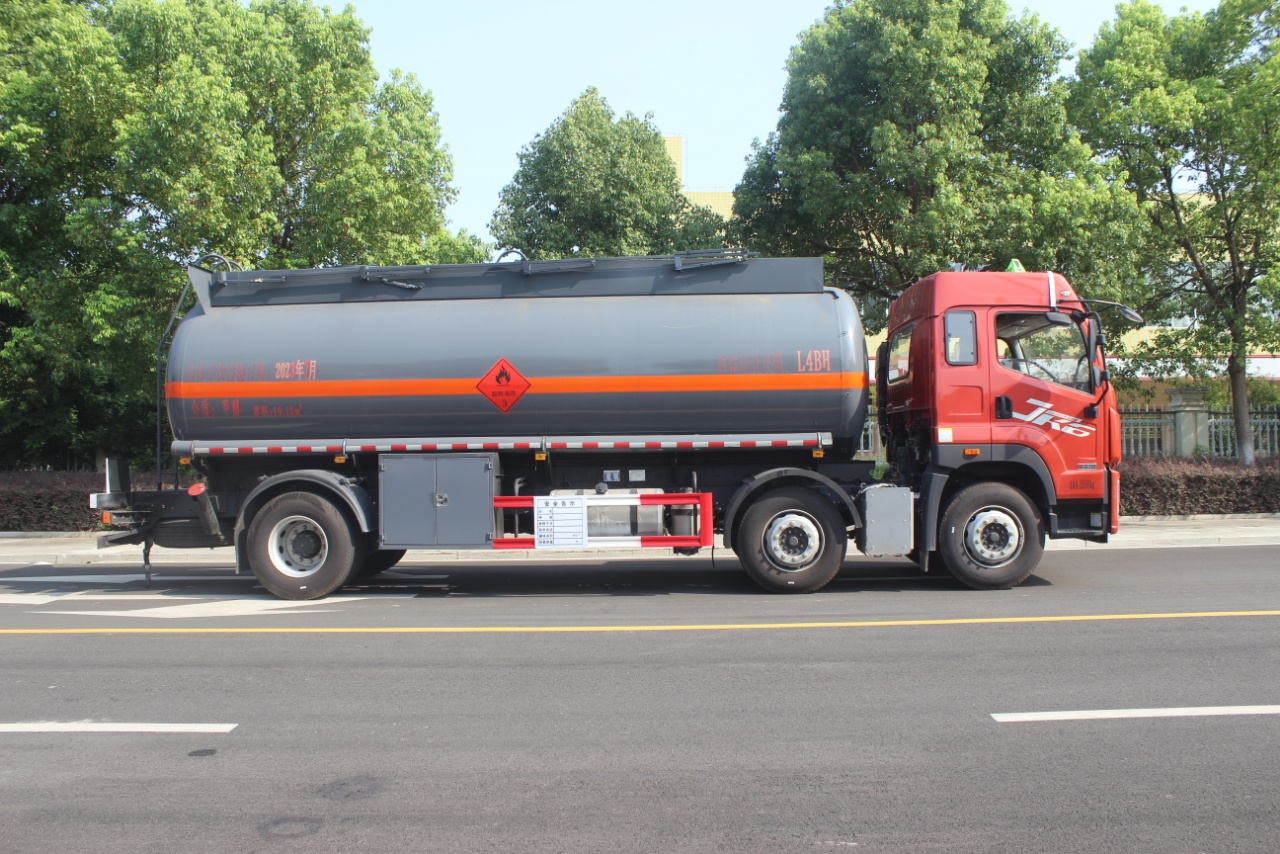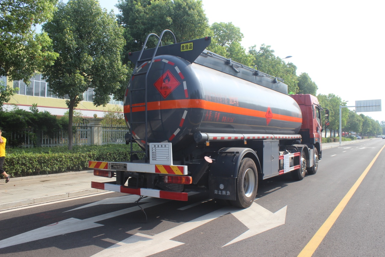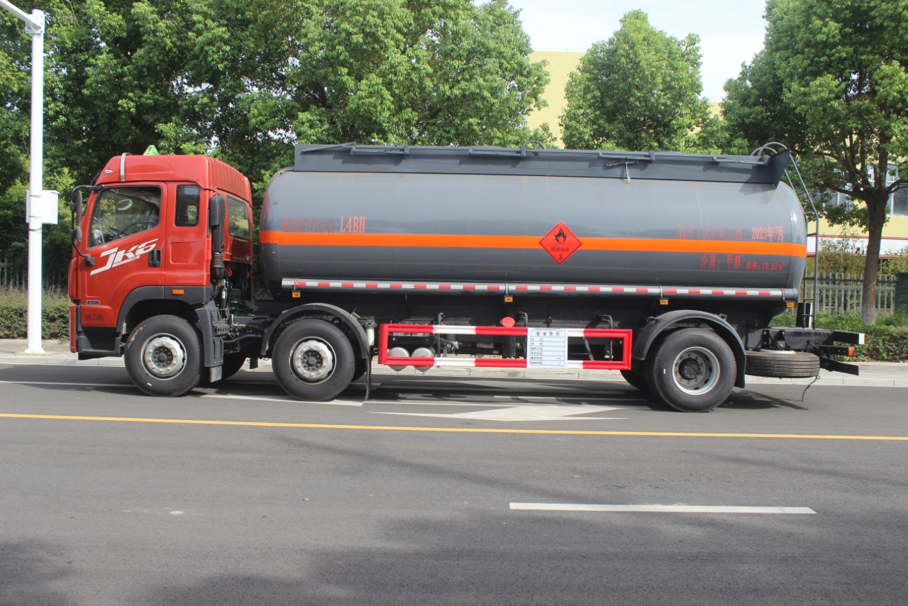 解放JK6三軸國(guó)六易燃液體罐式車嚴(yán)格按公告尺寸及外型制作,化工泵,泵進(jìn)泵出口在側(cè)中部,帶雙開門的保護(hù)箱,一個(gè)海底閥,海底閥5公里駕駛室語音提醒,鐵制折疊護(hù)欄,鐵制炮筒管,后爬梯,一個(gè)工具箱,兩具鐵制滅火器桶,靜電拖帶,兩根與管道箱同長(zhǎng)的輸液管及快接頭,兩具滅火器,罐體顏色銀灰色,貼反光帶,反光條,罐體左、右、后貼3個(gè)“易燃液體標(biāo)識(shí)”。