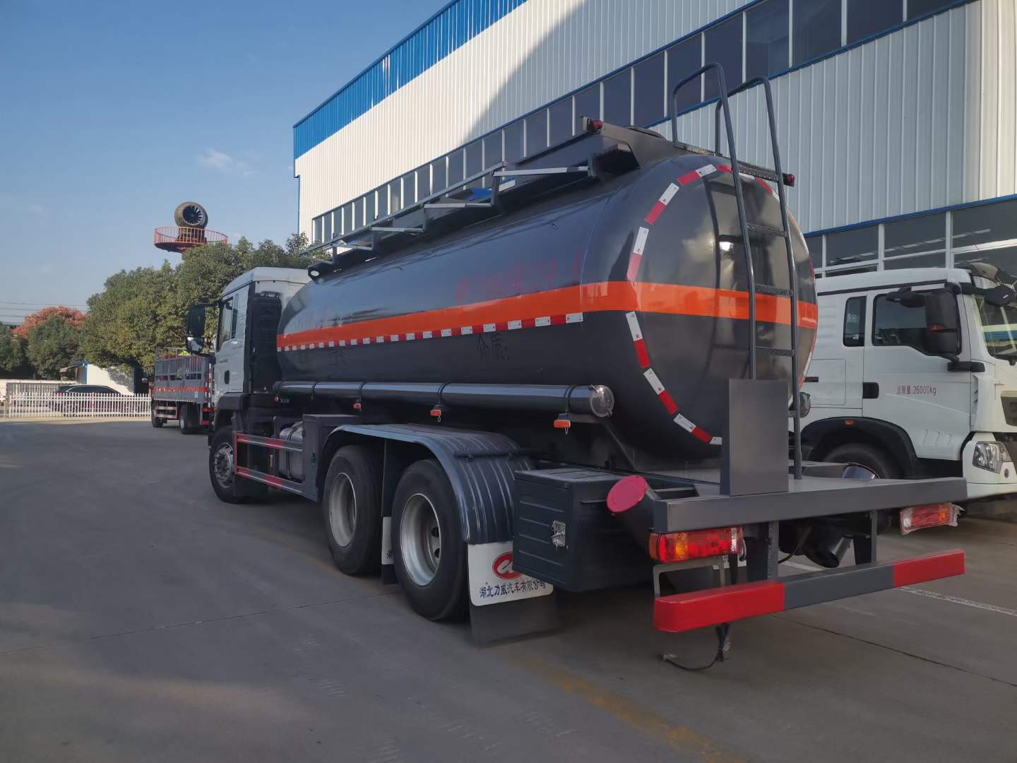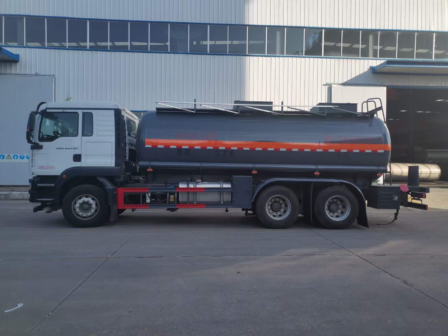 重汽汕德卡后雙橋腐蝕性物品運輸車罐體采用碳鋼Q235按GB18564制作,筒體厚度及封頭厚度符合18564設(shè)計,罐內(nèi)聚乙烯滾塑16MM厚,罐體按國家標準采用圓型狀截面,罐頂單層圍板,圍板內(nèi)做瀝青漆防腐,罐頂兩側(cè)帶碳鋼活動護欄,罐頂安裝2個罐口帶全塑罐蓋,帶接酸盤,接酸盤和罐頂做落水管引至后封頭落水,罐體底部底口位置加裝一個DN100不銹鋼襯氟海底閥帶緊急切斷裝置(加裝海底閥語音報警裝置),采用4寸無縫管/出料管道內(nèi)滾塑,后尾左右自流各配一個DN80 鋼襯塑球閥帶DN80 PP出口,出口帶塑料保護箱.罐體兩側(cè)為全塑炮筒式卸料管,配兩條和罐體一樣長的卸料鋼絲軟管2條,2個4KG滅火器,工具箱一個,在罐體左右、后正中部加貼“腐蝕品”標識及“腐”字,油漆國標深灰色,整車左右以及后尾部各一塊安全告示牌,后爬梯,整車左右擋泥板及所有附件安裝均按公告圖片制作.