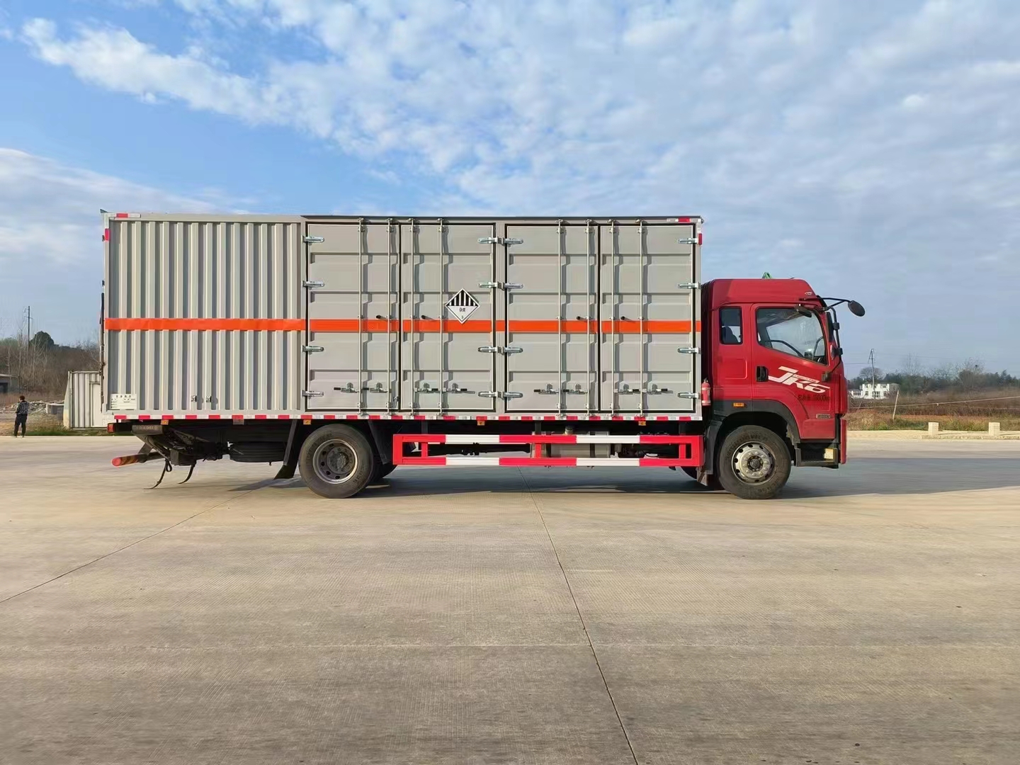 解放JK6國六危險品車在目前單橋車型中馬力大,廂長可多選,重點是價格經(jīng)濟實惠,是目前市場上不可多得的車型。尾部可加裝液壓尾板,整車不超重,讓您使用更省心!