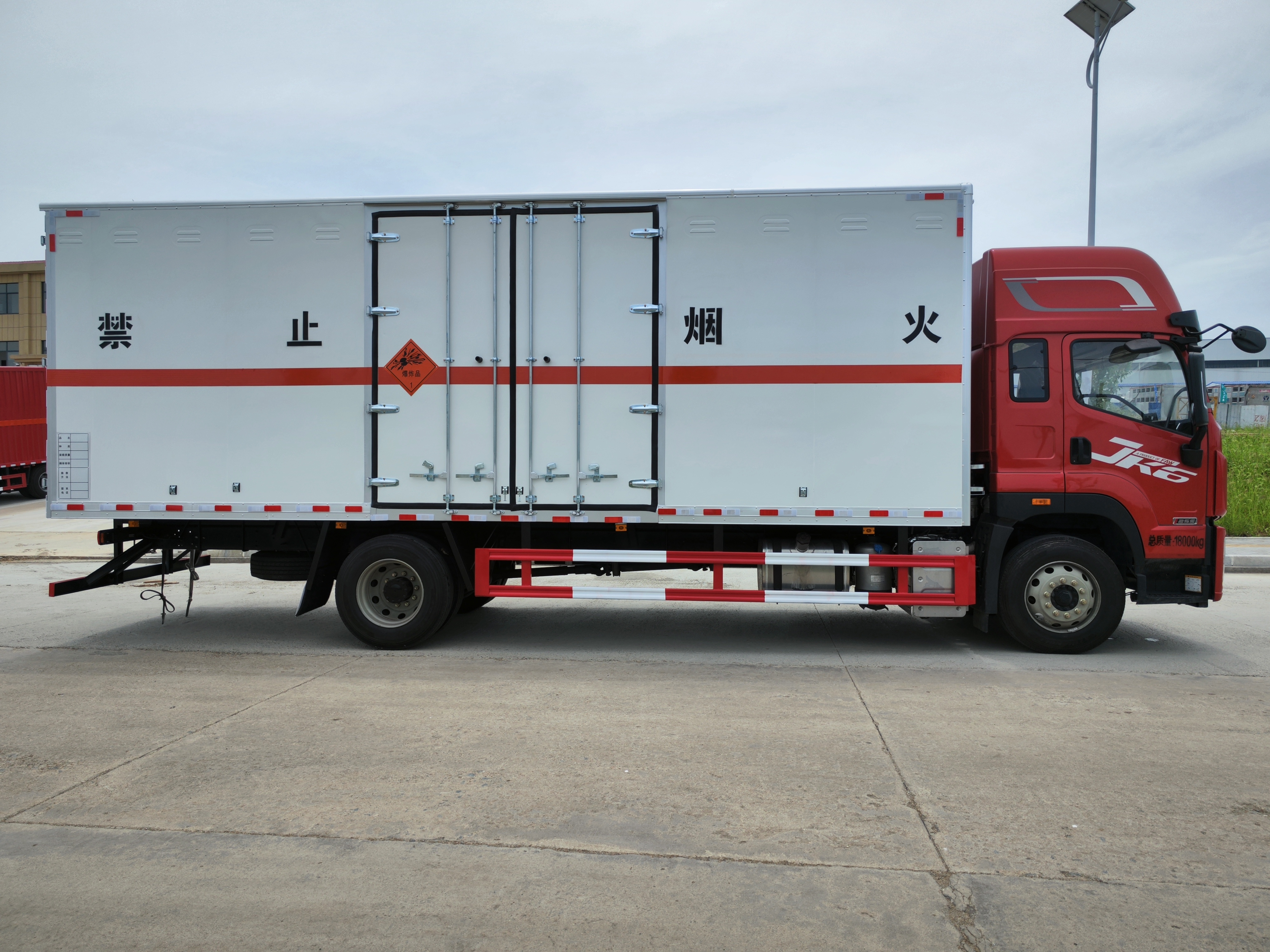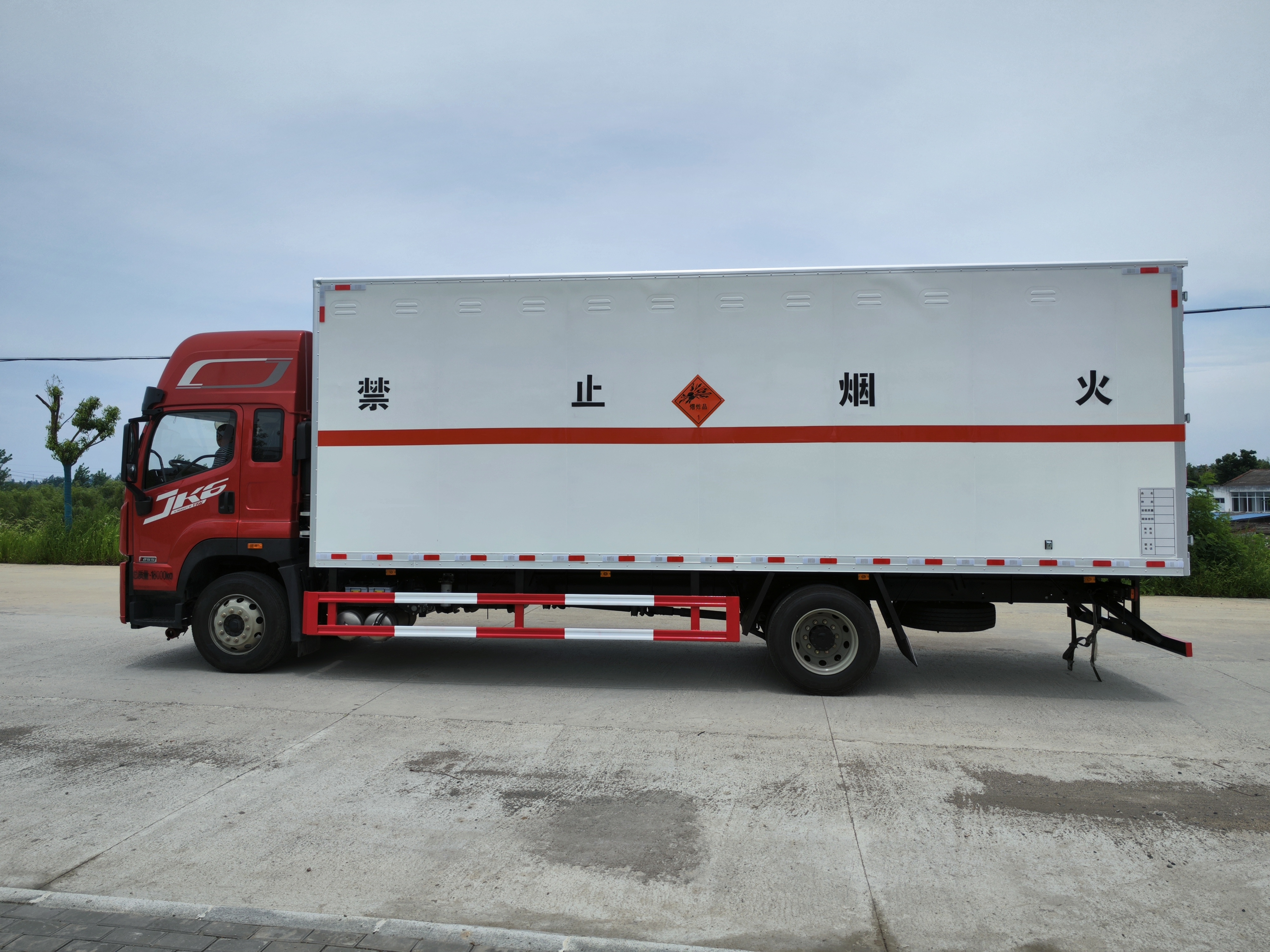 解放JK6國(guó)六7米8爆破器材運(yùn)輸車(chē)箱體采用的是烤漆工藝,可選左右開(kāi)門(mén),可帶液壓尾板,整車(chē)不超重。該車(chē)箱體帶左右開(kāi)門(mén),裝載噸位可達(dá)10噸,側(cè)門(mén)全開(kāi)的形式,裝貨更方便。貨箱采用的是免漆鋼板一次性沖壓成型的百葉窗,內(nèi)飾為導(dǎo)電性能良好的合金板有透氣孔,內(nèi)襯為矩形管骨架牢靠穩(wěn)定,骨架內(nèi)部填充為透氣防潮阻燃的擠塑板。廂體外部四周鋁合金型材包邊,底板和車(chē)廂前下部鋪橡膠皮,后門(mén)雙開(kāi),右側(cè)選裝側(cè)開(kāi)門(mén),內(nèi)部安裝固定貨物的臥環(huán)或腰欄,安裝煙霧報(bào)警器、防盜感應(yīng)器。車(chē)身附件靜電接地帶、滅火器、防火罩、危險(xiǎn)品三角燈、橙色反光帶、CCC反射板。