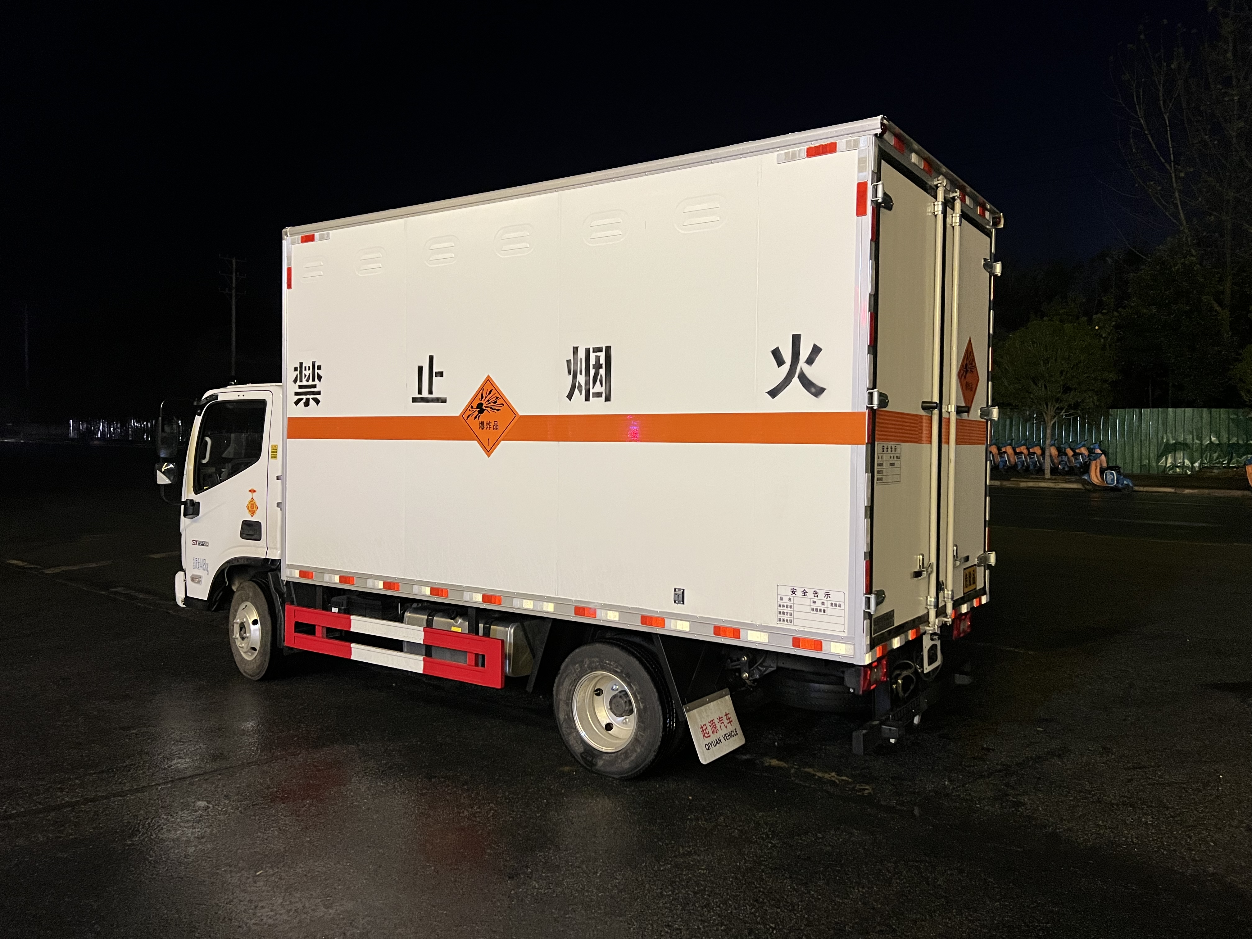 福田歐馬可國六藍(lán)牌20立方爆破車嚴(yán)格按照公告尺寸制作,外板采用1mm厚冷軋板有一次性成型的百葉窗,內(nèi)飾為導(dǎo)電性能良好的鋁板有透氣孔,內(nèi)襯為矩形管骨架牢靠穩(wěn)定,內(nèi)部填充為透氣防潮阻燃的擠塑板,四種材料經(jīng)現(xiàn)代工藝復(fù)合而成,廂體外部上下鋁合金型材包邊,底板和車廂前下部鋪橡膠皮,后門雙開,右側(cè)前部單開門,帶可卸式隔艙,內(nèi)部有固定貨物的臥環(huán),車輛外部有靜電帶、滅火器、防火罩,車廂內(nèi)安裝煙霧報(bào)警器和門防盜報(bào)警器,嚴(yán)格按照國家危險(xiǎn)品相關(guān)法規(guī)張貼。
