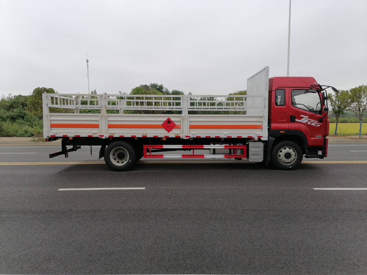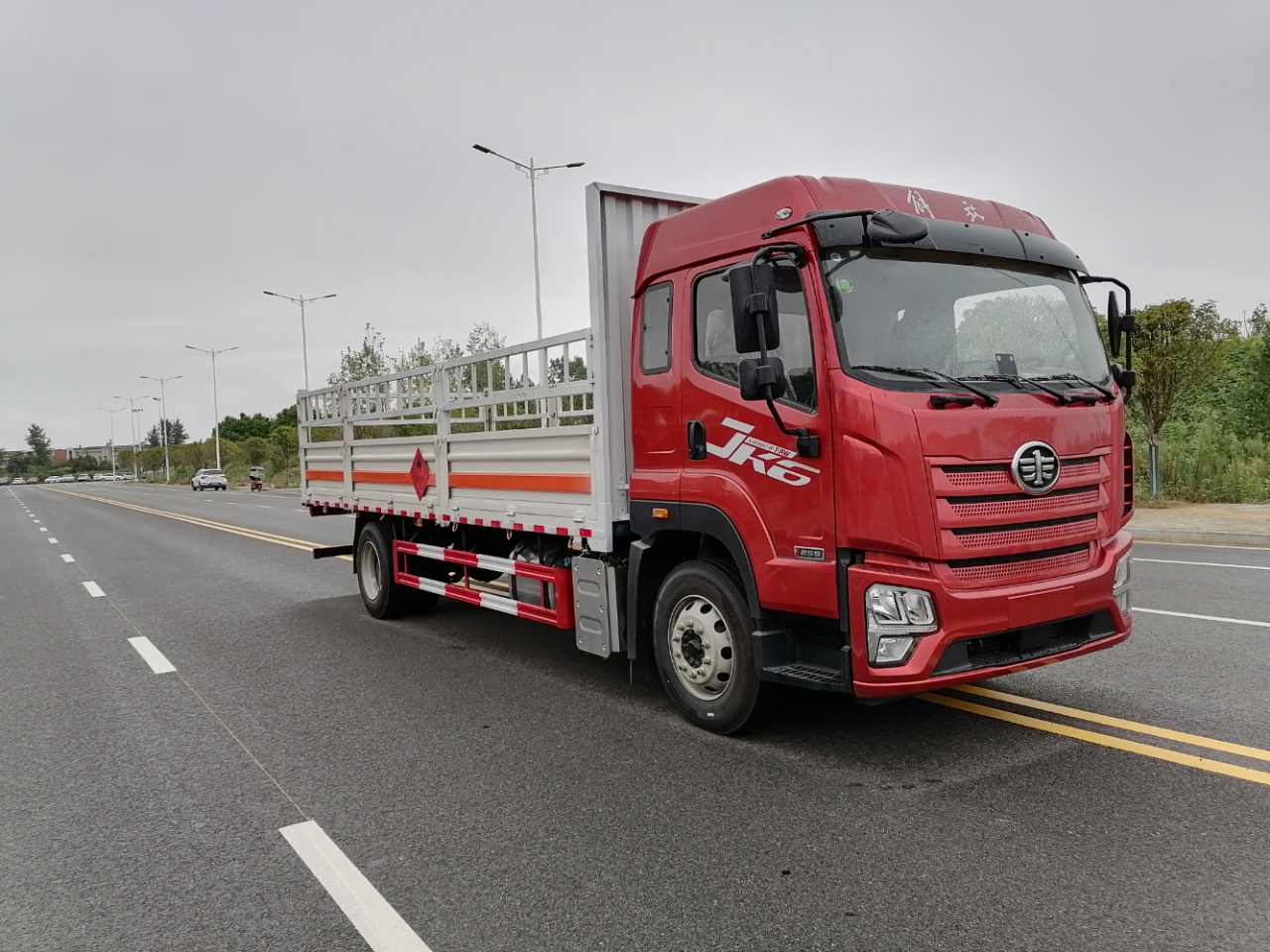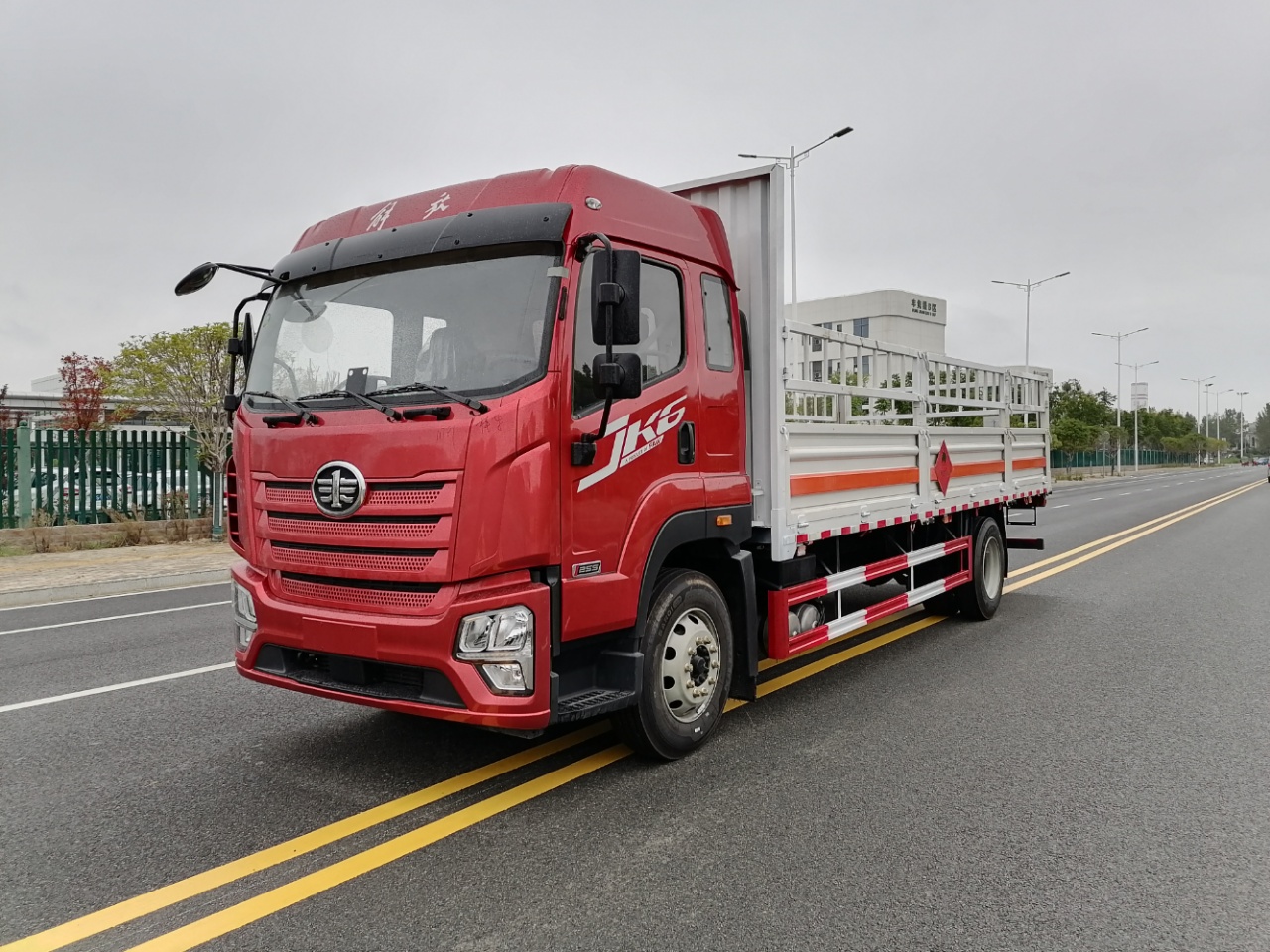解放JK6國六10噸氣瓶車箱體選用的是可拆卸高欄和低欄兩種貨箱形式,整車外形尺寸:9000x2550x3700,3300mm,車廂內(nèi)部尺寸:6850(6800)x2450(2400)x600mm。箱體選用的是副梁(14號槽鋼), 橫梁(8號槽鋼),邊框(10號槽鋼),廂體采用1.2毫米厚瓦楞板結(jié)構(gòu),車廂底板鋪4毫米厚花紋板,車廂底板鋪防靜電膠皮,隨車帶兩根接地防靜電膠帶和兩個2公斤滅火器,其余標(biāo)配,可根據(jù)用戶需求選裝液壓尾板。總質(zhì)量:18000kg 整備質(zhì)量:7820,7120kg,額定載質(zhì)量:9985,10050,10685,10750kg。