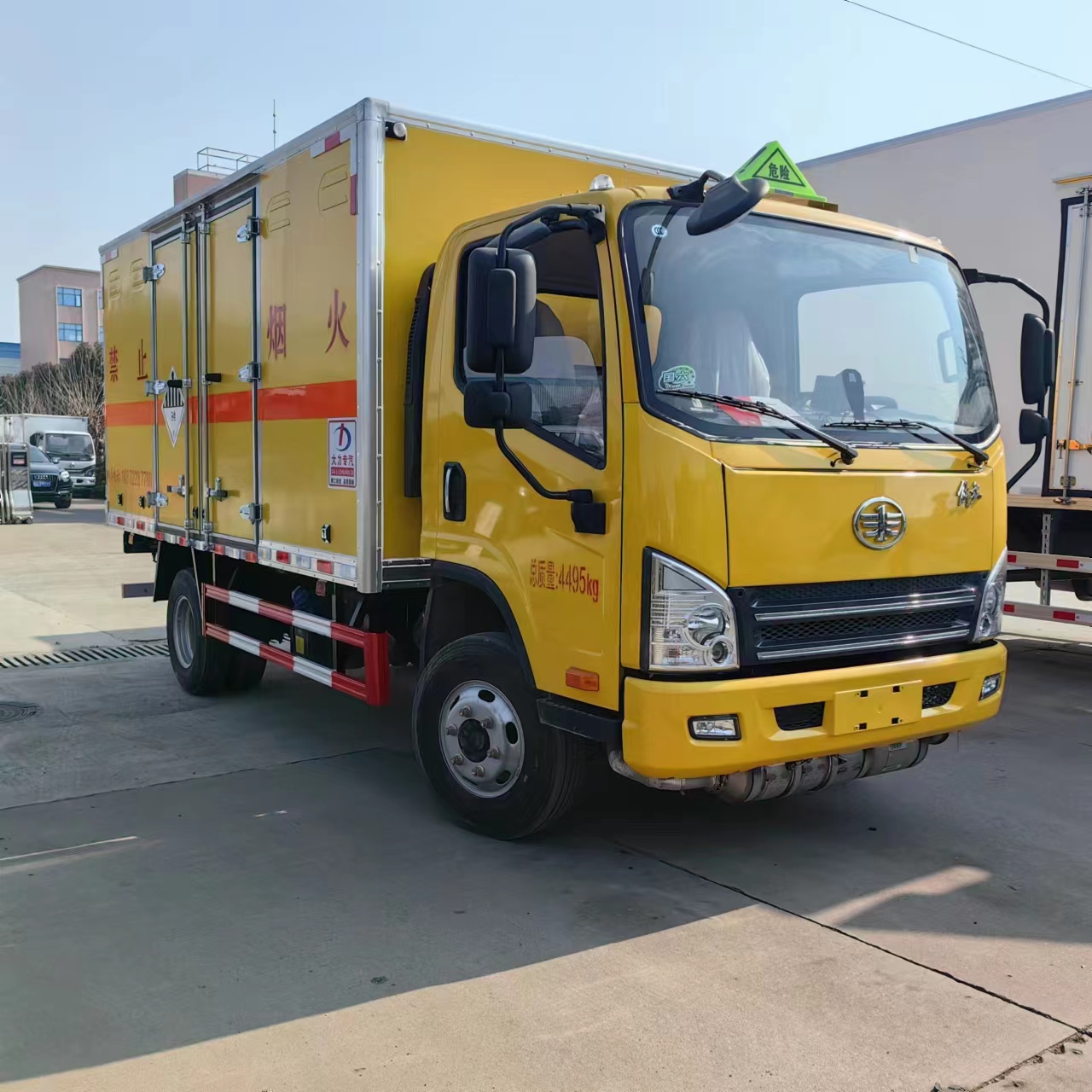 解放虎V國六黃色雜項危險品車選用的是寬體3人座駕駛室,可選濰柴130馬力或者錫柴140馬力發(fā)動機,匹配的是帶中控鎖、電動門窗、原廠空調(diào)等配置,解放定制的整車工程黃,顯眼奪目很容易被識別,也給周邊的人一種提示作用。針對專門運輸九類的車型,我司定制的是專用的污水槽,箱體底部帶廢液收集箱,便于清理廢機油、廢鎘、廢液、廢油渣等九類危險品。為了讓車輛更安全,我司的所有車輛全部采用的是防爆防阻燃箱體,箱內(nèi)全部匹配的是煙霧提示器和防盜提示器。箱體側(cè)門可選帶一個雙開側(cè)門、兩個雙開側(cè)門,或者加裝液壓尾板,多種配置可選,讓您適應(yīng)更省心!