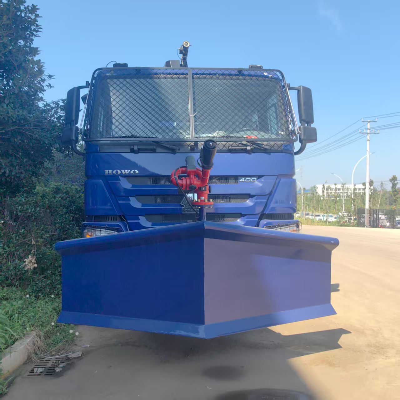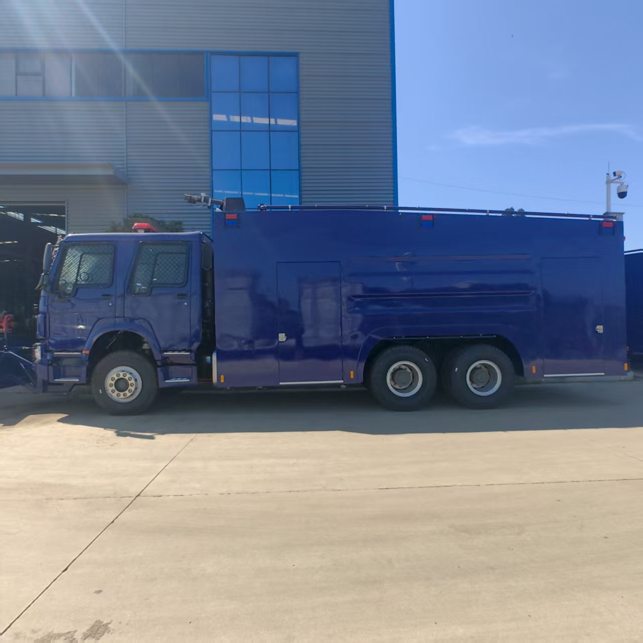 重汽豪沃避障維和治安車選用的是后雙橋底盤或者單橋底盤,可選多款發(fā)動機,該車用于維和治安,所以車輛所有涉及窗戶的地方全部采用的是防護網(wǎng)設(shè)計,車輛前部帶避障鏟,帶防爆消防水泵,可以進行水霧水噴灑,頂部帶高炮可灑泡沫或者辣椒水。采用的是遠程電動控制,所有管道全部采用的是不銹鋼控制。罐體容積可定制,根據(jù)高炮的設(shè)計定制有專用的管道。